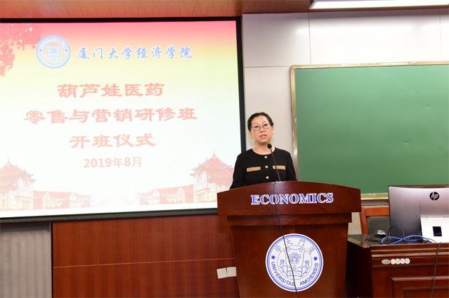 刘景萍董事长代表97国际药业集团对厦门大学各级领导、老师对97国际的大力支持表示感谢,并对研修班学员做动员讲话。她希望参加培训的学员珍惜来之不易的学习提升机会,沉下心来“加油充电”,结合工作实践,用心学习认真领悟,真正做到学有所获、学以致用。她说,厦大拥有着深厚的人文底蕴和优质的教育资源,在东南亚国家和地区具有广泛的影响力,在“一带一路”这一国家战略背景下,医药营销人员应该具备更为广阔的国际视野和更为丰富的知识储备,希望学员们能在本期研修班中学有所成,并以此为新的起点,以奋发的姿态投入到今后的学习和工作中去,不断取得新的进步和业绩,为医药产业和97国际事业的发展做出新的更大贡献。