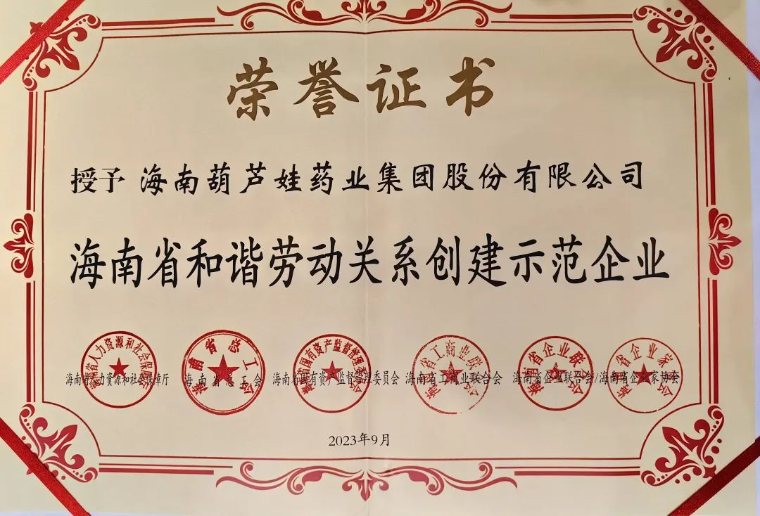 97国际药业集团获评“海南省和谐劳动关系创建示范企业”